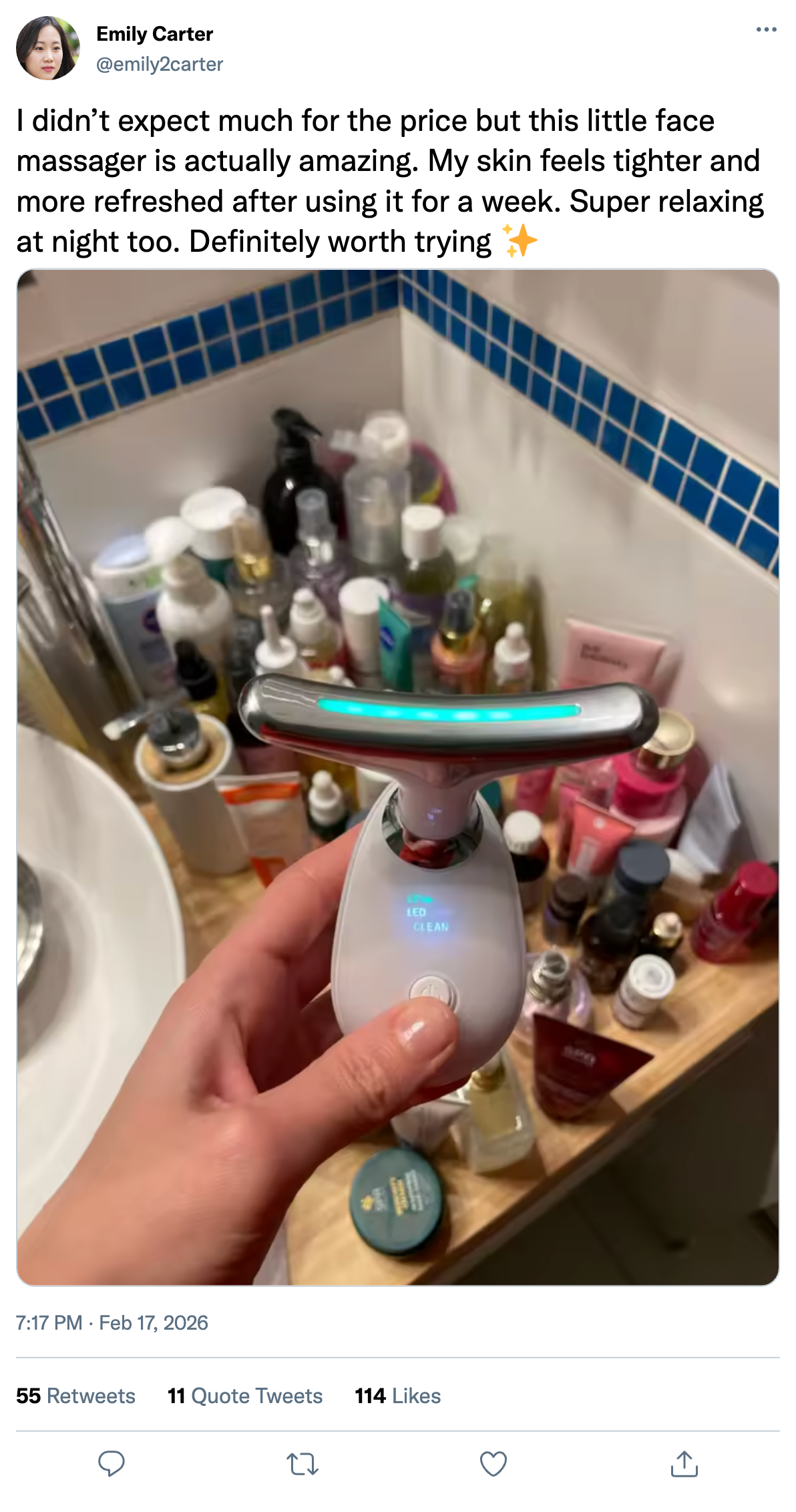 Supports concerns like fine lines, dullness, blemishes, wrinkles and uneven-looking skin in one device.